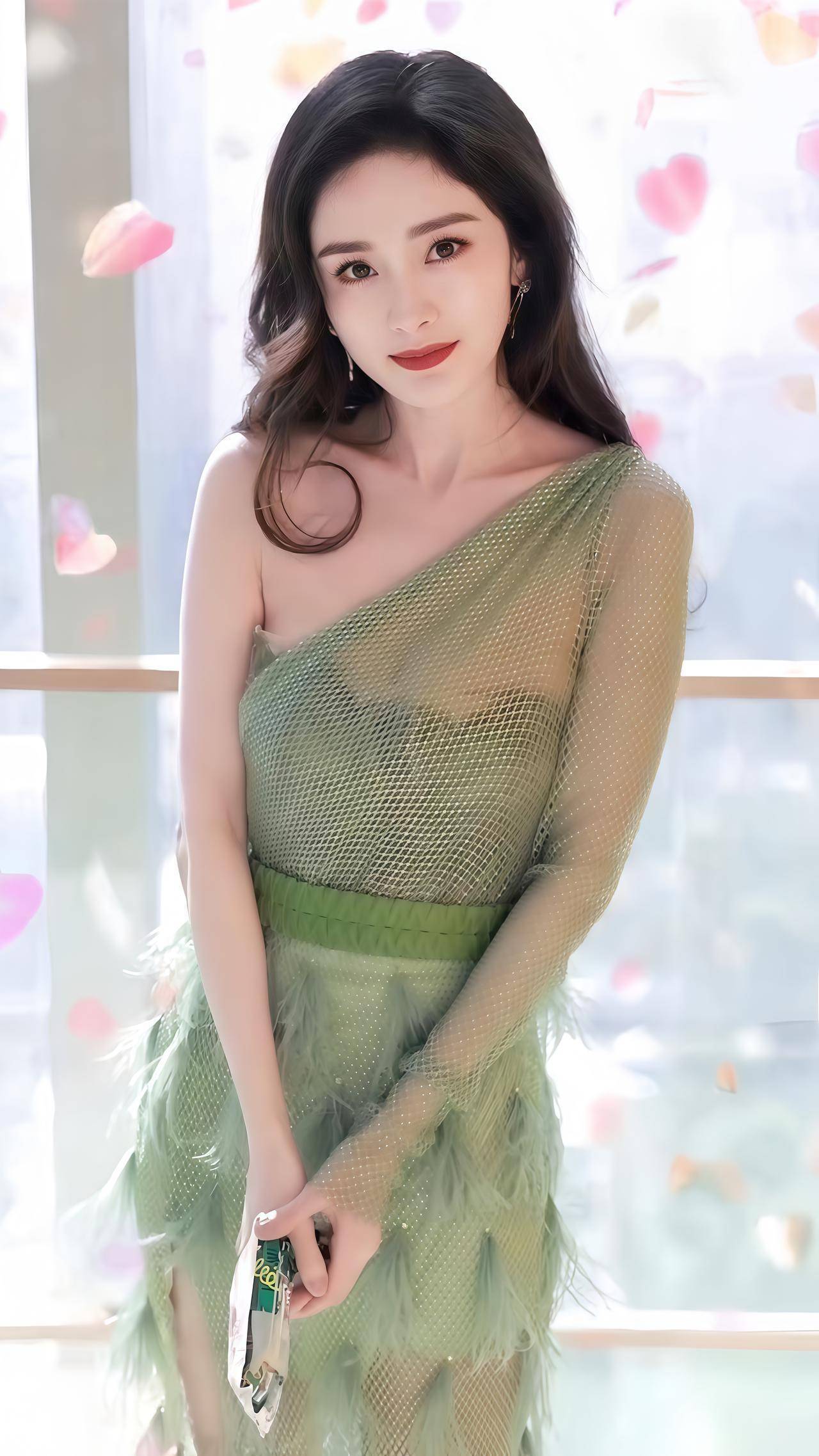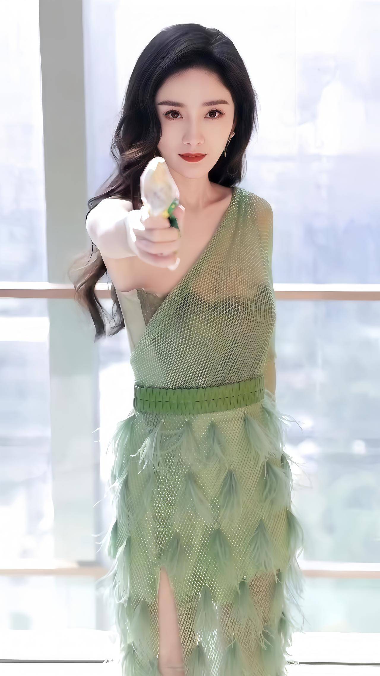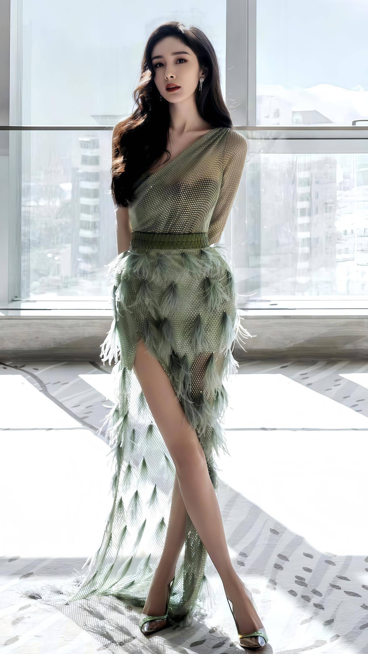 谁能扛住穿薄荷绿羽毛裙的杨幂啊!