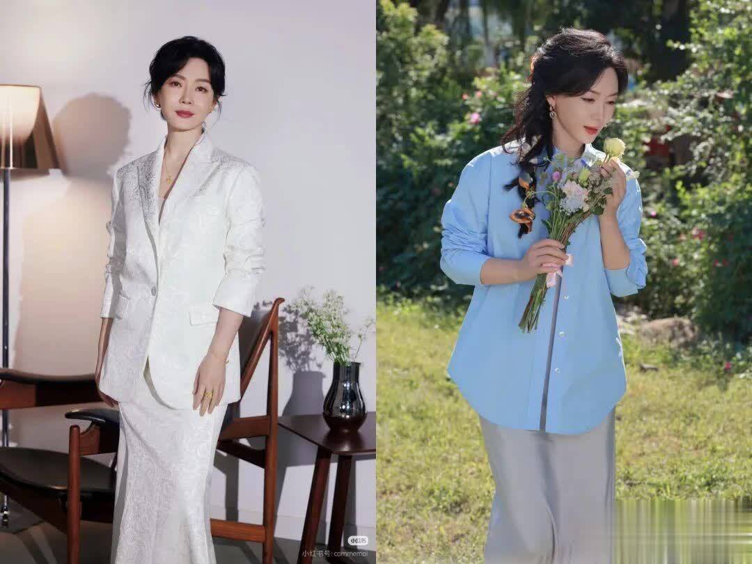 例如,49岁的陈数就极具穿搭魅力!她的穿搭大多偏向优雅、松弛风格。